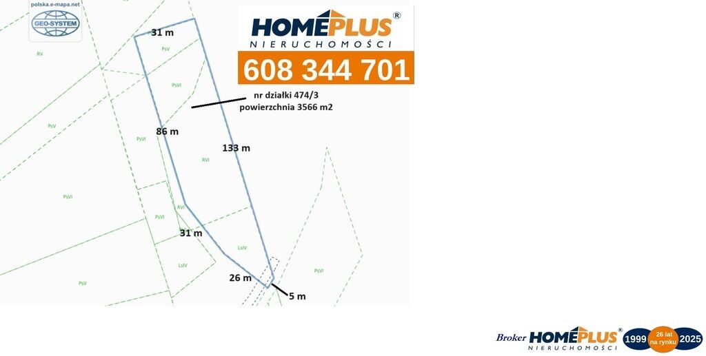 Na sprzedaż oferujemy działkę o powierzchni 3566 m2 położoną w
