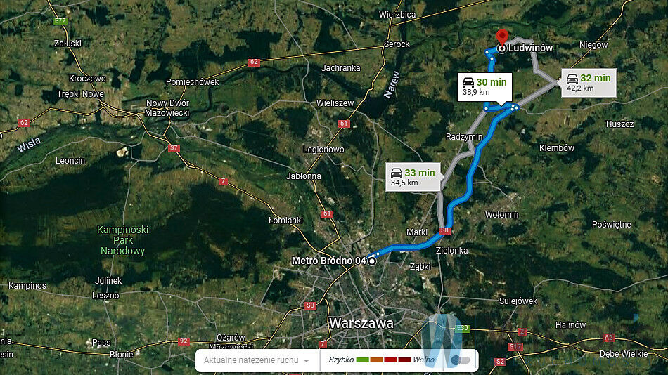Radzymin - 12 km, rzeka - Bug 3km, S8 - 12km.